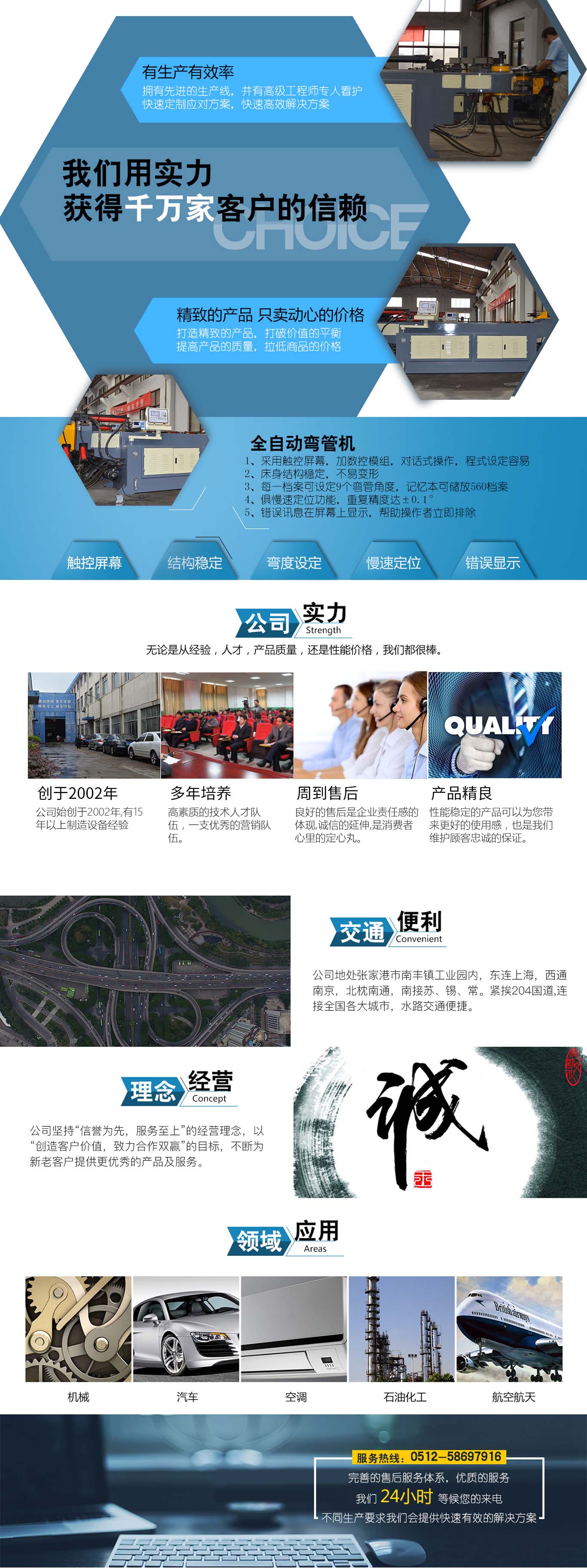 張家港市雙和機(jī)械制造有限公司始建于2001年,占地面積12000平方米,南鄰蘇州、無(wú)錫、上海,東鄰常州、南京,交通便利,位長(zhǎng)三角中間地段,風(fēng)景優(yōu)美的張家港。 雙和公司至創(chuàng)立開(kāi)始,引進(jìn)了國(guó)外的設(shè)計(jì)制造理念,組建了企業(yè)生產(chǎn)管理優(yōu)秀團(tuán)隊(duì),致力于管材加工機(jī)械研發(fā)、設(shè)計(jì)、制造。創(chuàng)新的設(shè)計(jì)理念,嚴(yán)格的質(zhì)量把關(guān),專(zhuān)業(yè)的售后服務(wù),不斷提升了我在整個(gè)行業(yè)的影響力。 雙和公司生產(chǎn)的系列產(chǎn)品分為彎管機(jī)、切管機(jī)、縮管機(jī)、磨齒機(jī)、伺服彎管機(jī)、數(shù)控彎管機(jī)、液壓彎管機(jī)、自動(dòng)切管機(jī)、管端成型機(jī)、倒角機(jī)、大弧滾圓機(jī)、鋁切機(jī)、壓彎?rùn)C(jī)等管材加工機(jī)械,廣泛用于航天業(yè)、造船業(yè)、汽車(chē)制造、鍋爐制造、自行車(chē)、摩托車(chē)、體育健身器材、管制品家...
